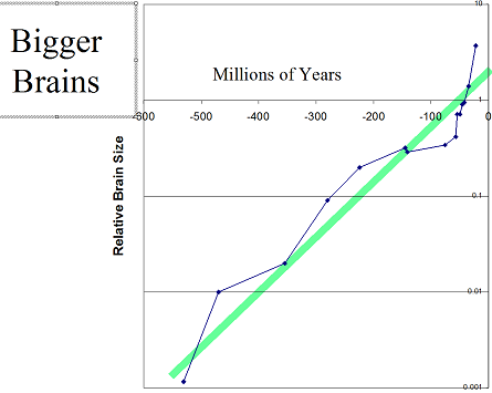 This graph is based on data from Harry Jerison's book: "Brain Size and the Evolution of the Mind."